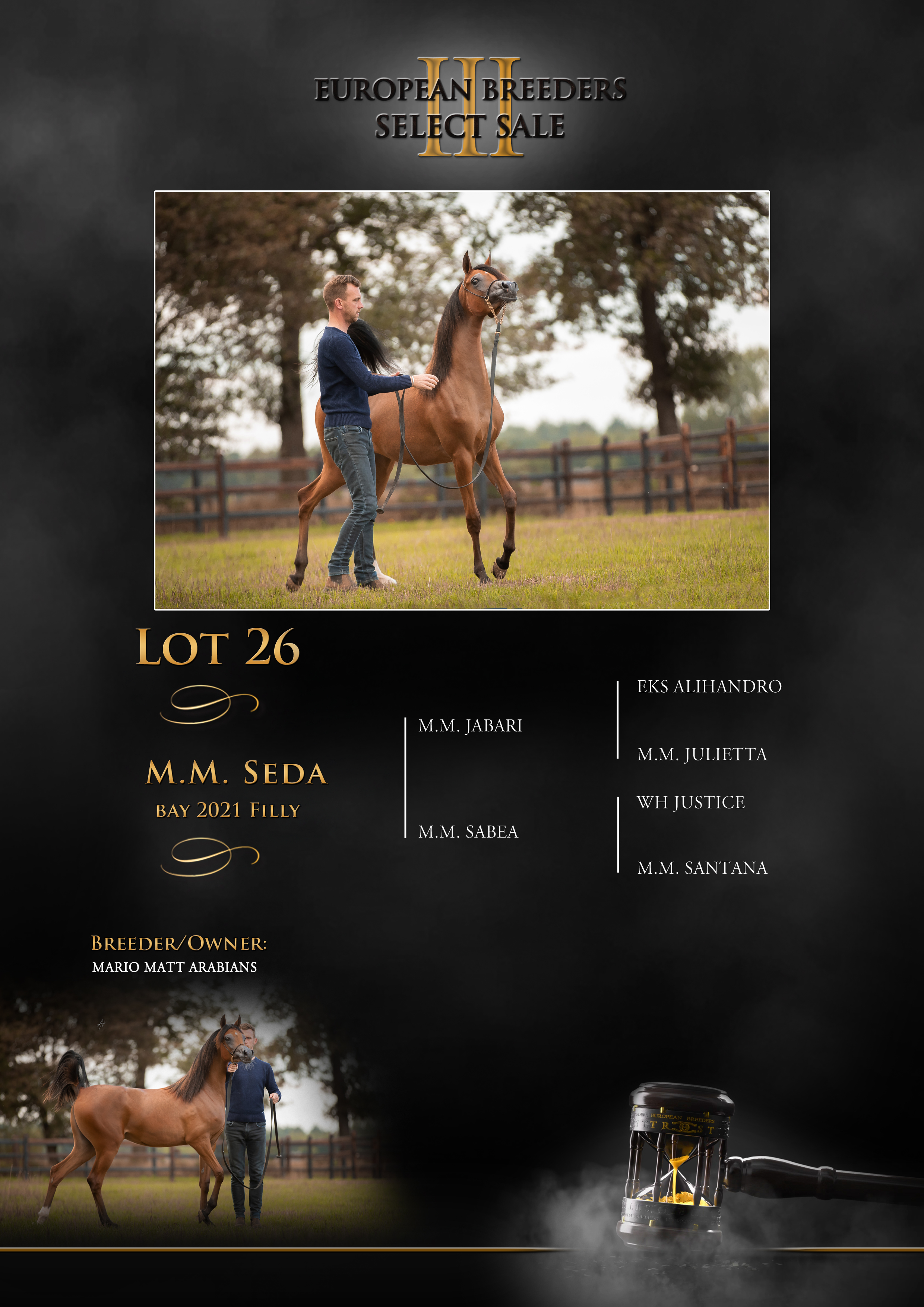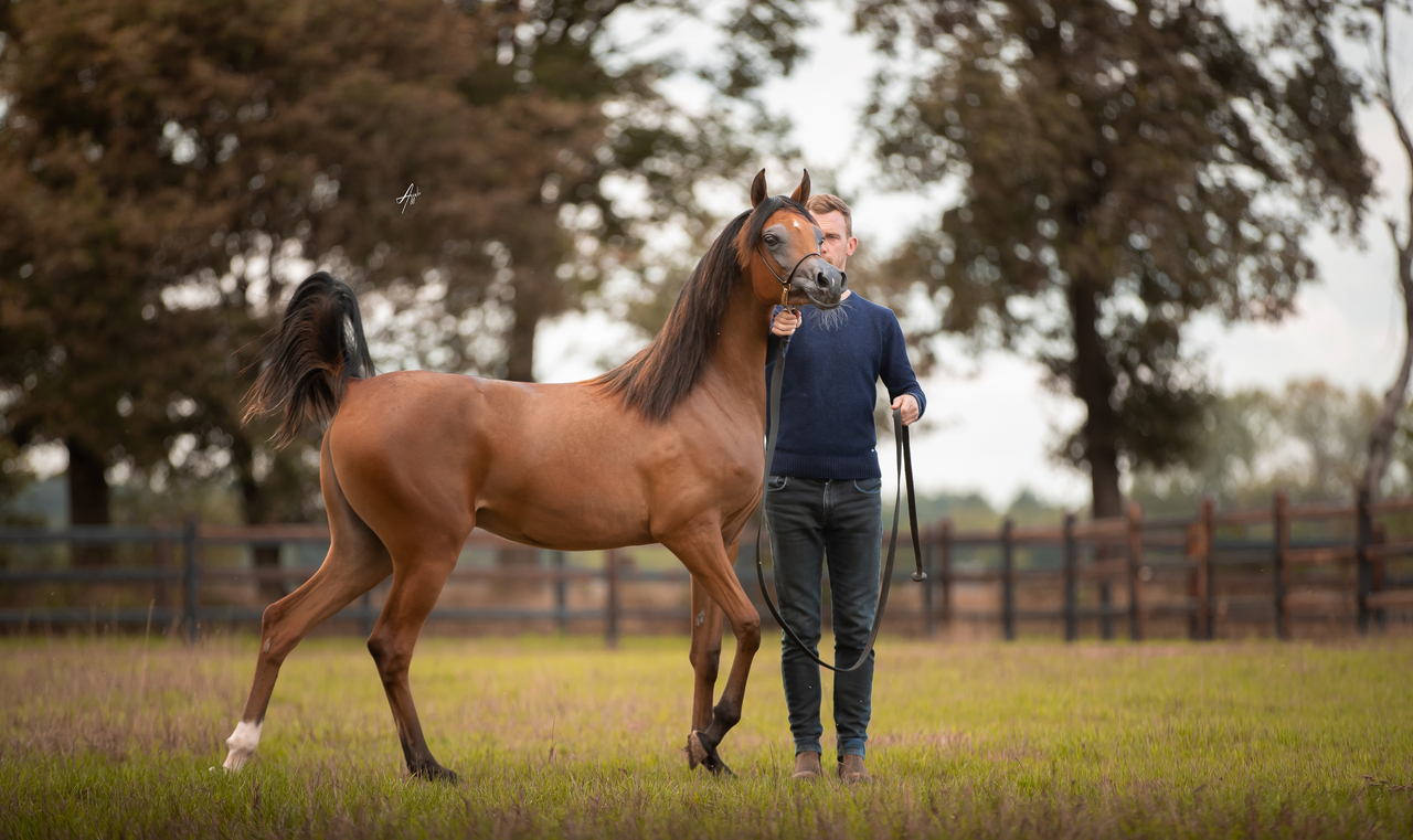 He is sired by the untamed EKS Alihandro Champion all over and a son by the legendary Marwan Al Shaqab. His dam nether less is M.M. Julietta a beautiful bay mare by the straight Egyptian stallion Monther Al Nasser and M.M. Josephine by the late Lorenzo